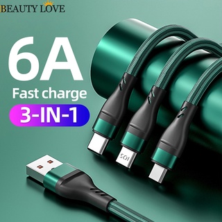 Cáp Sạc Nhanh 3 Trong 1 6A 100W Bện Nylon Cho Điện Thoại Thông Minh Android