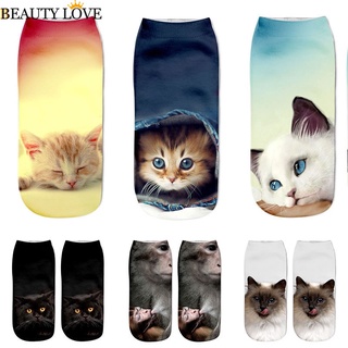 Tất Ngắn Nữ In Hình Mèo 3D Dễ Thương