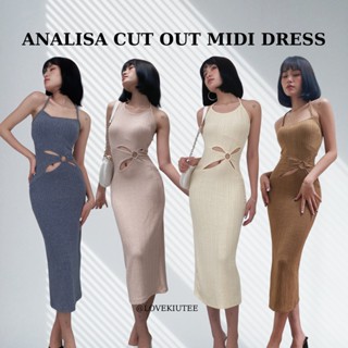 Đầm maxi dài 2 dây khoét eo cột cổ Analisa Cut Out Midi Dress vải cao cấp co dãn LOVEKIUTEE