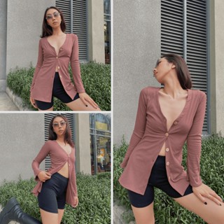 Áo tay loe dáng dài nút gỗ Kassie Button Cardigan mặc được nhiều kiểu LOVEKIUTEE