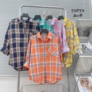 LOVI SHOP Áo sơ mi caro cánh dơi suông dài tay nhiều màu