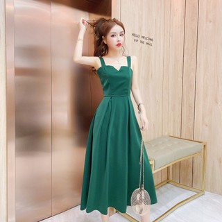 Đầm 2 Dây Xòe Dáng Dài Cổ V LSEOUL V1081 Chất Dày Dặn Ngọt Ngào Nữ Tính