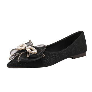 Giày Búp Bê Đế Thấp Mũi Nhọn Đính Nơ Cỡ Lớn Thoải Mái Phong Cách Mới Cho Nữ Size 41-43