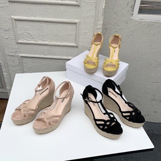 Giày Sandal Cao Gót 14CM Đế Xuồng Dày Dặn Phối Dây Bện Gợi Cảm Thời Trang Cho Nữ