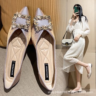 Giày Búp Bê Da Mềm Đính Đá Mũi Nhọn Thời Trang Hàn Quốc Gợi Cảm Dành Cho Nữ