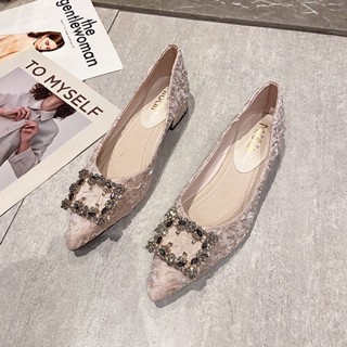 Giày Búp Bê Mũi Vuông Đế Bằng Đính Đá Trang Trí Sang Trọng Thời Trang Phong Cách Hàn Quốc Size 41-43