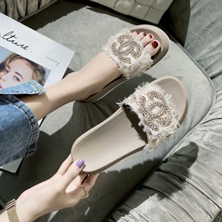 Sandal Một Dây Đế Dày Đính Đá Thoải Mái Thời Trang Mùa Hè 2023 Phong Cách Mới Cho Nữ