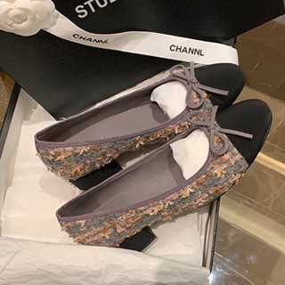 Giày Cao Gót Mũi Tròn Đính Nơ Phong Cách Retro Mới Cho Nữ