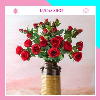 Combo 10 cành hoa giả - Hoa Hồng Nhung Lucas 65cm trang trí đẹp, giống thật