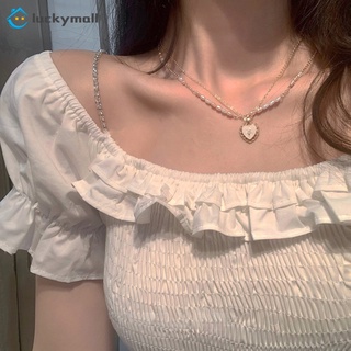 Dây chuyền nhiều lớp mặt trái tim đính ngọc trai giả phối rỗng phong cách Hàn Quốc thời trang cá tính dành cho nữ