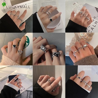 Set Nhẫn Bạc Hàn Quốc Y2k Điều Chỉnh Được Họa Tiết Hình Học / Bướm / Trái Tim Thời