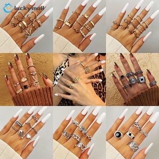 Set nhẫn bướm rắn hình học vàng thời trang cá tính retro
