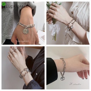 Vòng Tay Dây Xích Hai Lớp Bằng Bạc Hình Bướm / Trái Tim Đơn Giản Cho Nữ