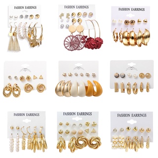 12 miếng bông tai ngọc trai đặt kim loại Ladies Disc Diamond Bông tai thời trang Trang sức Phụ kiện Quà tặng