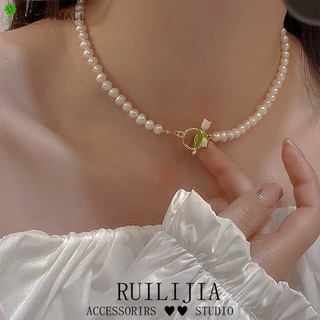 Vòng Cổ Choker Ngọc Trai Mặt Hoa Tulip Hồng Ngọt Ngào Thanh Lịch Cho Nữ