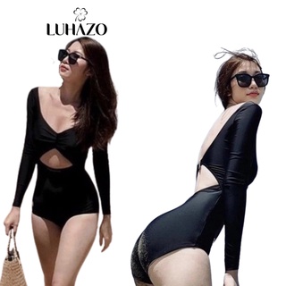 Bikini 2 mảnh LUHAZO dài tay đồ bơi nữ đi biển áo dài tay cột nơ mix quần chip sexy hở lưng liền thân kín đáo 2522DK5T30