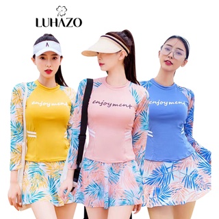 Đồ bơi LUHAZO đi biển BIkini liền thân cho nữ đi du lịch 1 mảnh 3 chi tiết váy rời dài tay kín đáo 9016 T13T4