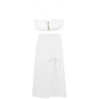 Váy đi biển trắng nữ LUHAZO dáng dài dài hở lưng đi biển khoét eo 2 mảnh sang chảnh hàn quốc 8139 DK1