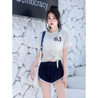 Đồ bơi nữ 3 chi tiết LUHAZO đi biển 2 mảnh áo lưới kèm áo croptop quần đùi cạp cao phong cách thể thao 2319 D8T3