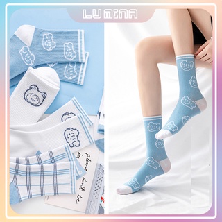Tất vớ nam nữ họa tiết gấu phối màu xanh dương trắng basic Unisex kẻ sọc đơn giản dễ thương chất Cotton mềm mịn TD039