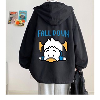 Áo khoác nam nữ có nón in vịt 2 màu trắng đen