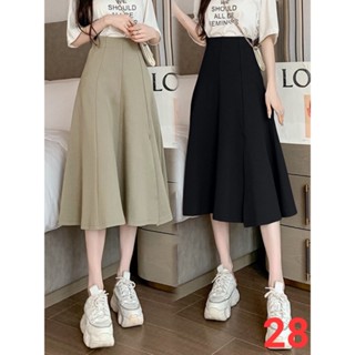 Chân váy Midi dài Lưng cao Màu trơn Ulzzang Hàn Quốc Chân váy Cạp cao Xinh thời trang