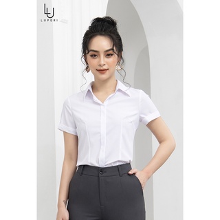 Áo Sơ Mi Trắng Nữ Đẹp Công Sở LUPERI cổ đức tay ngắn form ôm chất lụa Hàn Quốc co giãn không nhăn LFSM1105