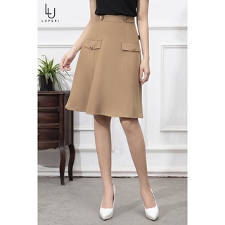 Chân Váy Chữ A LUPERI Eo Có Phối Cúc Chất Liệu Tuypxi Mềm Mại Nữ Tính LFCV5113