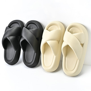 Dép bánh mì unisex, Dép nữ quai ngang chất liệu EVA hai màu trắng đen trơn size kép 36-43 [Lù store] DC04