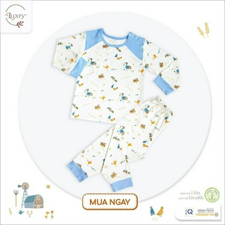 Bộ quần áo dài cài vai phối họa tiết đáng yêu sang trọng thương hiệu Luxry cho bé trai, bé gái từ vải sợi tre cao cấp