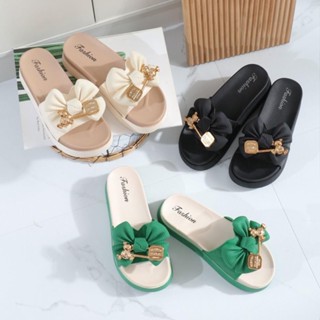 Dép nữ thắt nơ da mềm đế bánh mì siêu nhẹ LuxyShoe