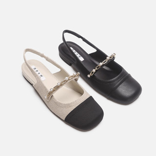 Giày bệt nữ dây xích ngọc bít mũi hở gót 2cm sang chảnh Luxyshoes LXD7