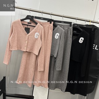 Sét áo sơ mi dáng ngắn + chân váy dài thô hàn