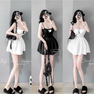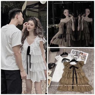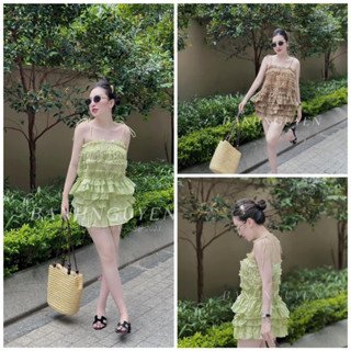 Sét áo hai dây bèo phối ren + chân váy tầng cạp chun