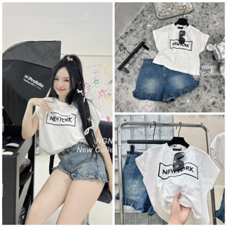 Sét áo phông New-york tay hến + quần sooc bèo denim