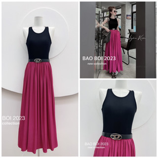 Váy thun sát nách phối hồng kèm đai