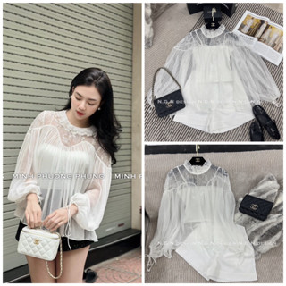 Sét áo sơ mi ren tay bồng + quần sooc
