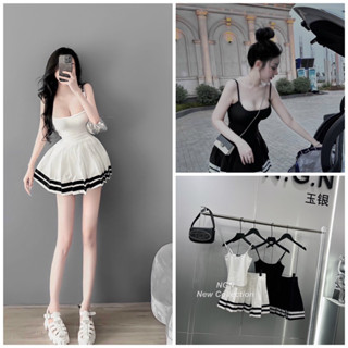 Sét áo hai dây+chân váy xếp li sọc