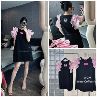 Váy xuông đen phối tay bèo hồng