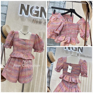 Sét áo sơ mi tay bồng cổ vuông + quần sooc