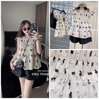 Sét áo babydoll hình mèo + quần sooc đen