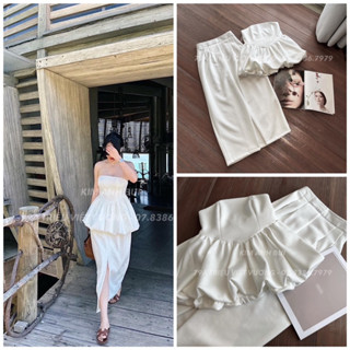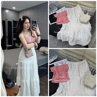 Sét áo dây cổ yếm rút eo + chân váy boom gió nhăn
