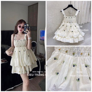 Váy hai dây babydoll hoa nhí dáng ngắn