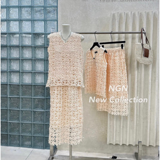 Sét áo sát nách + chân váy bút chì hoa nổi Korea