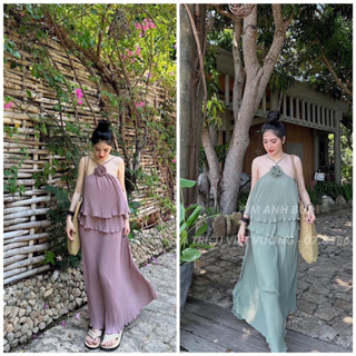 Sét áo dài tay tăm dúm ngực + quần bèo