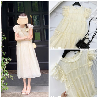 Váy cộc tay dúm eo hoạ tiết kẻ sắc màu
