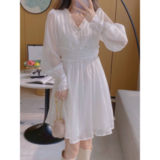 Đầm trắng tùng xoè tay dài tiểu thư Annian MS1206