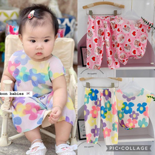 Lyvyshop - (Nhí + Đại) Bộ áo cộc tay quần loe thun gân siêu dễ thương cho bé gái 09kg-30kg