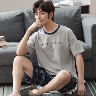Bộ đồ ngủ gồm áo tay ngắn + quần short dáng rộng bằng cotton nguyên chất thời trang mùa hè cho nam