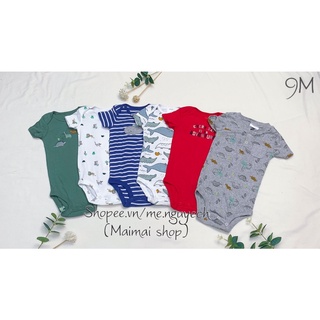 (6-9M chọn màu- Trai) Body chip TAY NGẮN xuất dư cổ tròn, cổ đáp chéo cho bé trai sz 6-9M- Bộ liền thân cho bé